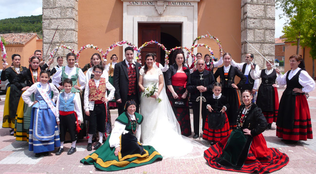 A la salida de la Iglesia, bajo una nube de arroz deseando abundancia, se les dedicó la tradicional danza de boda y se les hizo entrega de ramos de flores que luego se encargaron de lanzar a los invitados.